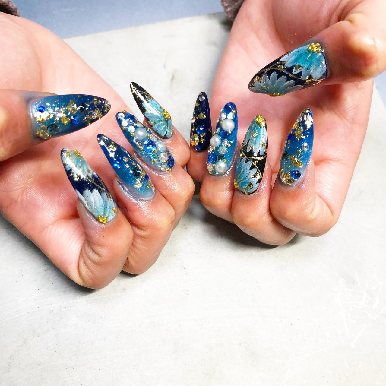 超キラゴテ青薔薇個性派成人式花魁盛りネイル フリマアプリ サイトshoppies